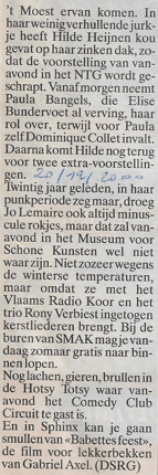Deze aflevering verscheen twintig jaar geleden onder de titel “warm en koud, ernst en luim”, een titel die zeker niet van mij afkomstig was, want ik zou niet weten wat daarmee bedoeld werd. De foto van Hilde Heynen daarentegen is afkomstig van S.Silbermann via Wikipedia.