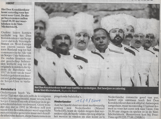 Het Don Kozakkenkoor heeft een traditie te verdedigen. Dat bewijzen ze zaterdag in de Sint-Michielskerk. Repro De Bock. Dit delen: Klik om te delen op Facebook (Opent in een nieuw venster) Facebook Klik om te delen op X (Opent in een nieuw venster) X Klik om dit te e-mailen naar een vriend (Opent in een nieuw venster) E-mail Klik om af te drukken (Opent in een nieuw venster) Print Meer Klik om op LinkedIn te delen (Opent in een nieuw venster) LinkedIn Klik om op Pinterest te delen (Opent in een nieuw venster) Pinterest Vind-ik-leuk Aan het laden...