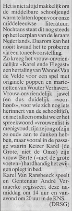 André Vermaerke regisseert “Karel ende Elegast” in de KNS. Dit delen: Klik om te delen op Facebook (Opent in een nieuw venster) Facebook Klik om te delen op X (Opent in een nieuw venster) X Klik om dit te e-mailen naar een vriend (Opent in een nieuw venster) E-mail Klik om af te drukken (Opent in een nieuw venster) Print Meer Klik om op LinkedIn te delen (Opent in een nieuw venster) LinkedIn Klik om op Pinterest te delen (Opent in een nieuw venster) Pinterest Vind-ik-leuk Aan het laden...