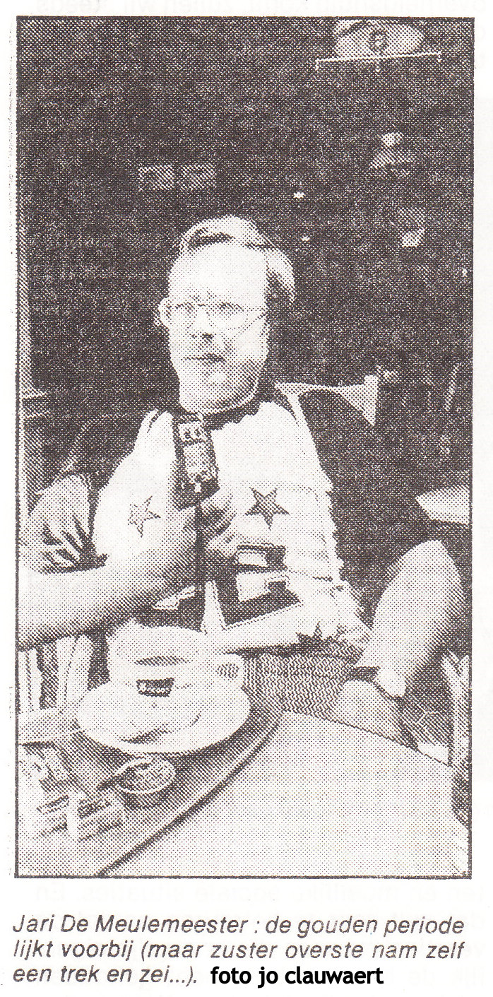 « …En mevrouw Farantouri is natuurlijk vertrokken zonder haar hotel te betalen », zucht Jari, hiermede vaag refererend aan het stukje waarin we hem een parodie op Jan Theys hadden toegemeten. We kleuren rood tot achter onze oren want de linkse beweging toont zich weer eens op z’n smalst. We vragen schuldbewust of we soms een handje kunnen helpen bij de verbouwing en hoe het daar nu eigenlijk mee zit ?