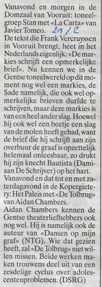 Twintig jaar geleden was Aidan Chambers (foto Niccolò Caranti via Wikipedia) erg populair bij de adolescenten. Dit delen: Klik om te delen op Facebook (Opent in een nieuw venster) Facebook Klik om te delen op X (Opent in een nieuw venster) X Klik om dit te e-mailen naar een vriend (Opent in een nieuw venster) E-mail Klik om af te drukken (Opent in een nieuw venster) Print Meer Klik om op LinkedIn te delen (Opent in een nieuw venster) LinkedIn Klik om op Pinterest te delen (Opent in een nieuw venster) Pinterest Vind-ik-leuk Aan het laden...