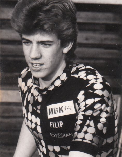 Waar ik al die andere groten van de wielersport pas op het einde van hun carrière heb geïnterviewd, stond Filip Meirhaeghe (°5 maart 1971) ten tijde van het interview nog maar aan het begin van zijn loopbaan. Hij was amper achttien jaar, maar toch had hij reeds in 1987 en ’88 twee wereldkampioenstruien in het mountainbiken in de wacht gesleept.