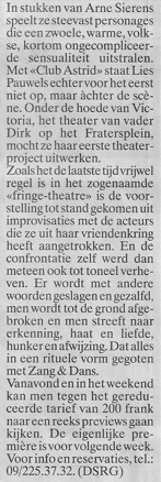 Lies Pauwels presenteert Club Astrid (foto Fred Debrock – wikiportret.nl) Dit delen: Klik om te delen op Facebook (Opent in een nieuw venster) Facebook Klik om te delen op X (Opent in een nieuw venster) X Klik om dit te e-mailen naar een vriend (Opent in een nieuw venster) E-mail Klik om af te drukken (Opent in een nieuw venster) Print Meer Klik om op LinkedIn te delen (Opent in een nieuw venster) LinkedIn Klik om op Pinterest te delen (Opent in een nieuw venster) Pinterest Vind-ik-leuk Aan het laden...