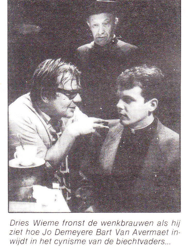 En Jappe Claes liet zijn acteurs ook al verloren lopen in de ruimte. We verstonden ze niet, we zagen ze niet en als dat dan uiteindelijk soms toch het geval was, viel er niets te zien. Vooraf had Claes terecht opgemerkt dat Fassbinder melodrama is en dat bij melodrama niet het wat maar het hoe belangrijk is, maar dat hoe heeft hij dan blijkbaar toch niet onder de knie gekregen. Hoertje Brit Alen b.v. was veel opwindender nadien aan de bar dan in haar zgn. minuscule pakje en Mark Verstraete (om maar die te noemen) hebben we ook al boeiender geweten. Natuurlijk had elke acteur wel al eens zijn nummertje (de zusters Jonckheere b.v.), maar enkel Bob De Moor kon ons constant boeien, al leek het er juist op dat die zichzelf regisseerde.