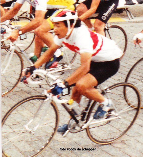 Dat Etienne nochtans overschot van gelijk had, werd 25 jaar daarna bewezen, toen mijn zoon Roddy vanuit datzelfde venster de doortocht van de kermiswedstrijd zou fotograferen! (Op de foto: de Japanner Tadashi Sangu.)