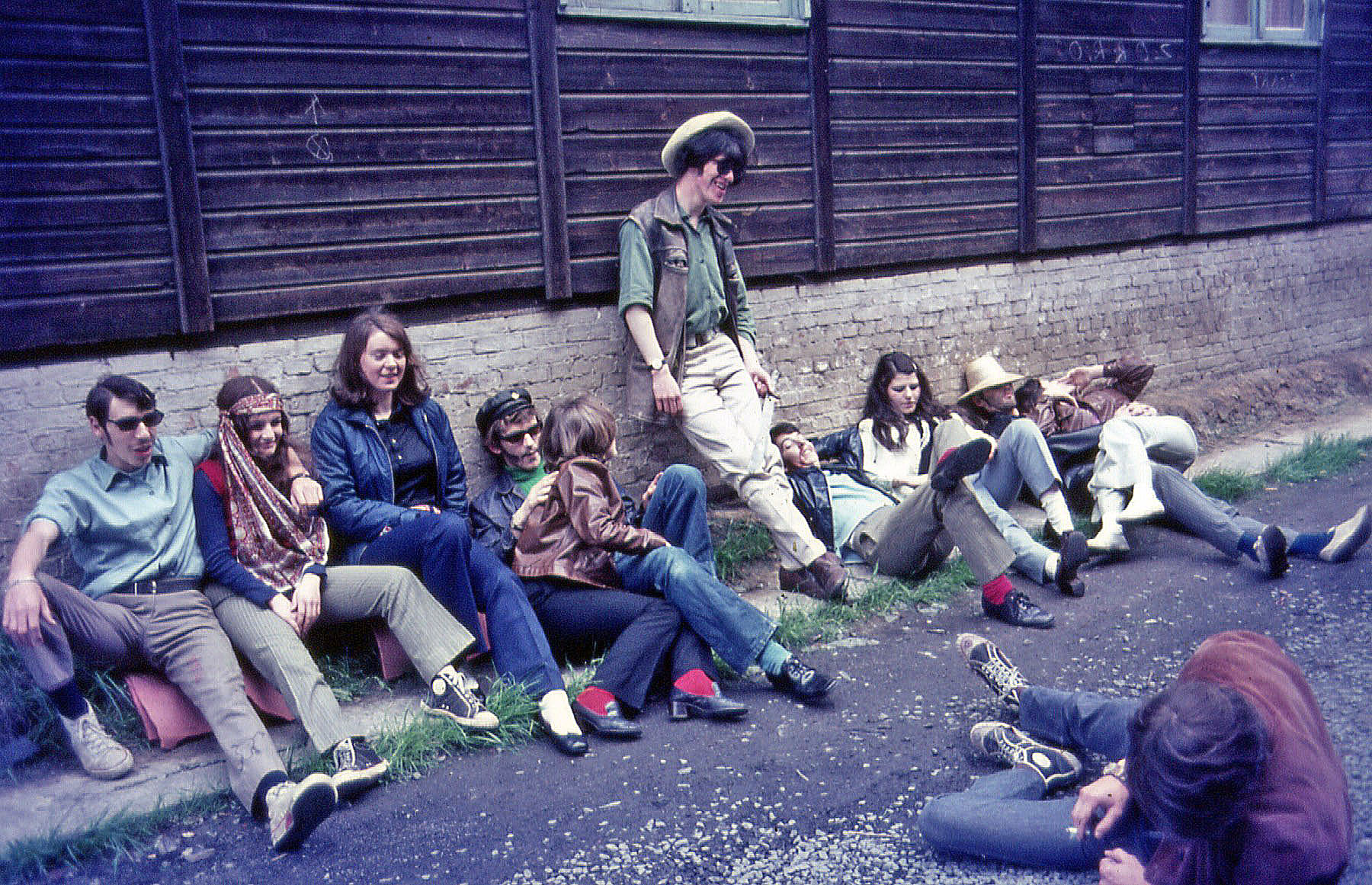 Maar toen we zestien waren, hadden we dus een clubje dat zich “De Blommenkinders” noemde naar het hitje van Armand. Eigenlijk een belachelijke naam voor vier opgeschoten kerels met de baard in de keel en beginnende haargroei op de wangen (Etienne Van Damme, Willy Gosselin, Erik Westerlinck en ikzelf). Als verontschuldiging kan ik alleen maar volgend rekensommetje aanvoeren: 1951 + 16 = 1967. Sedert “De Prehistorie” een verplicht vak op de middelbare scholen is geworden weet iedereen nu wel wat dat betekent: flower power. Het jaar daarop reden tanks Praag binnen en braken studenten in Parijs de straatstenen op omdat zij “sous les pavés la plage” meenden te ontdekken. Met een waterkanon werden de bloemen uit het Vondelpark gespoten, het hek was van de Dam. Later zouden we met de jongerengroep De Veldstraat nog op bedevaart gaan naar deze plaats (de Dam dus), maar ondertussen waren we met de Blommenkinders met van alles aan ’t experimenteren, al bedoel ik daar zeker geen drugs mee…