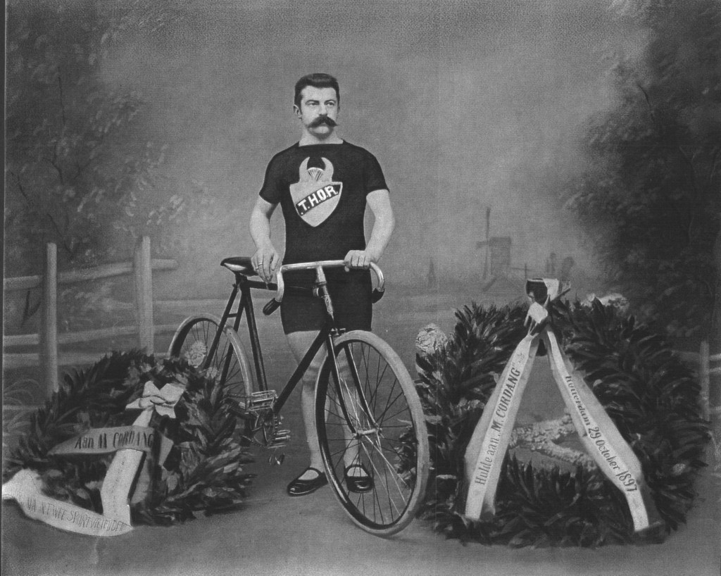 Zo begint een uitgebreide reclamefolder uit 1897 van de Dunlop-fabrieken over de fenomenale prestaties van hun renner Mathieu Cordang.