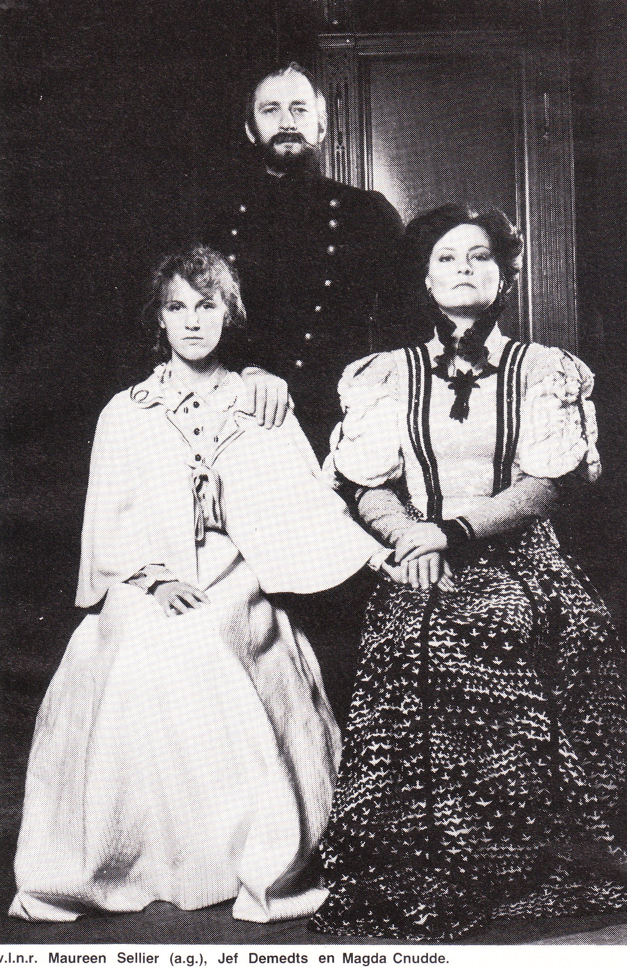 In het decor, eind negentiendeëeuws, viel de grote koelkast die er als een modern monster bijstond, uit de toon. Wie had die daar in gezet ? Aldus M.V. in De Rode Vaan, 1980 (*)