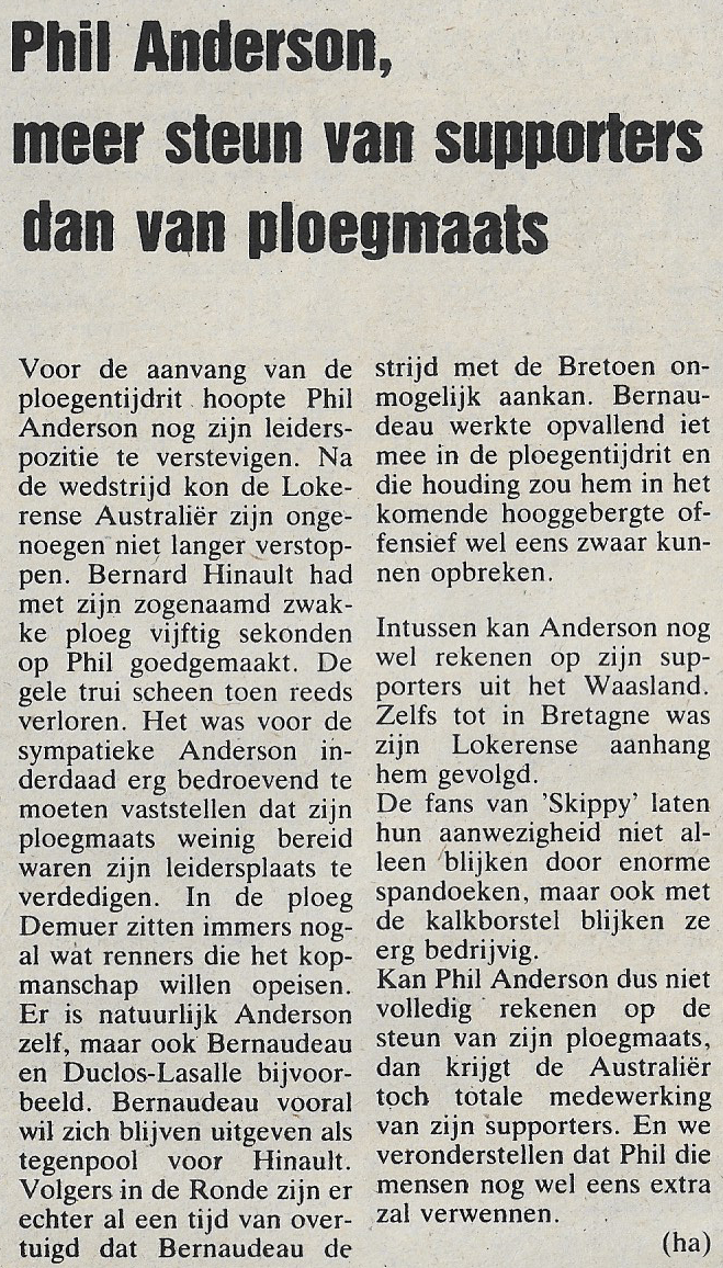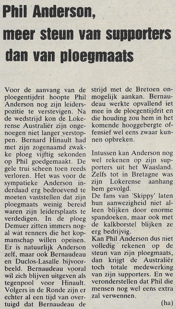 De Australiër Phil Anderson heeft lange tijd in Lokeren gewoond. Hij werd daar dan ook gehuldigd na zijn schitterend debuut in de Tour…