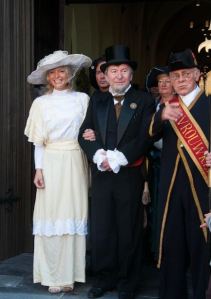 Zoals het honderd jaar geleden de gewoonte was, vatte men de dag met een mis. De notabelen werden met oldtimers naar de kerk gebracht, waar zij onder massale belangstelling werden verwelkomd door de sjampetter, de suisse en de belleman. De mis werd opgeluisterd door de harmonie St.-Cecilia (en muzikanten van Temse) en de gezangen waren Gregoriaans. Daar al zag men vele aanwezigen getooid in kledij van 1912.