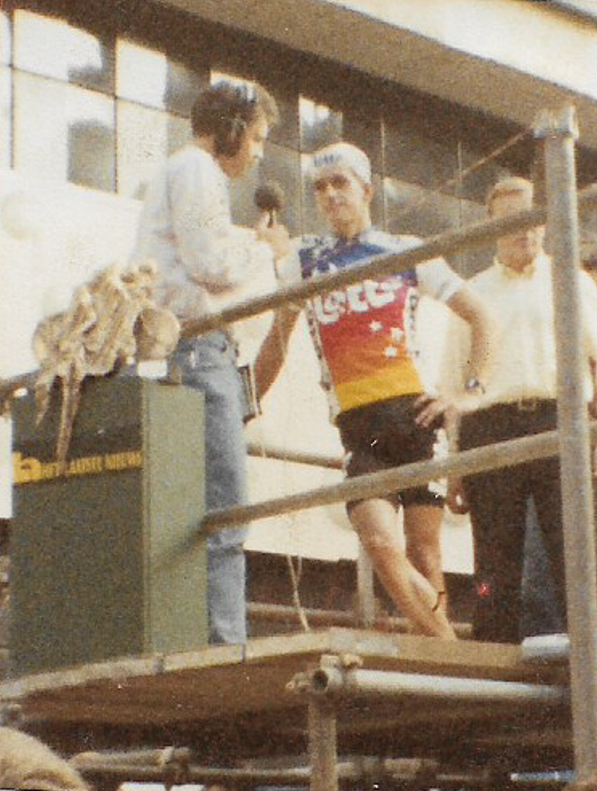 Ik was erbij dat jaar, toen de aankomst plaats had voor de deur van Het Laatste Nieuws. Uiteraard kon ik met mijn “speelgoedfototoestel” geen foto nemen van de eindsprint, maar ik heb wel wat foto’s genomen achteraf, zo o.m. van Mark Uytterhoeven, die Peter De Clercq interviewt. Niet van de winnaar helaas, die ik echter niet veel later wel heb kunnen fotograferen tijdens een meeting in ’t Kuipke.