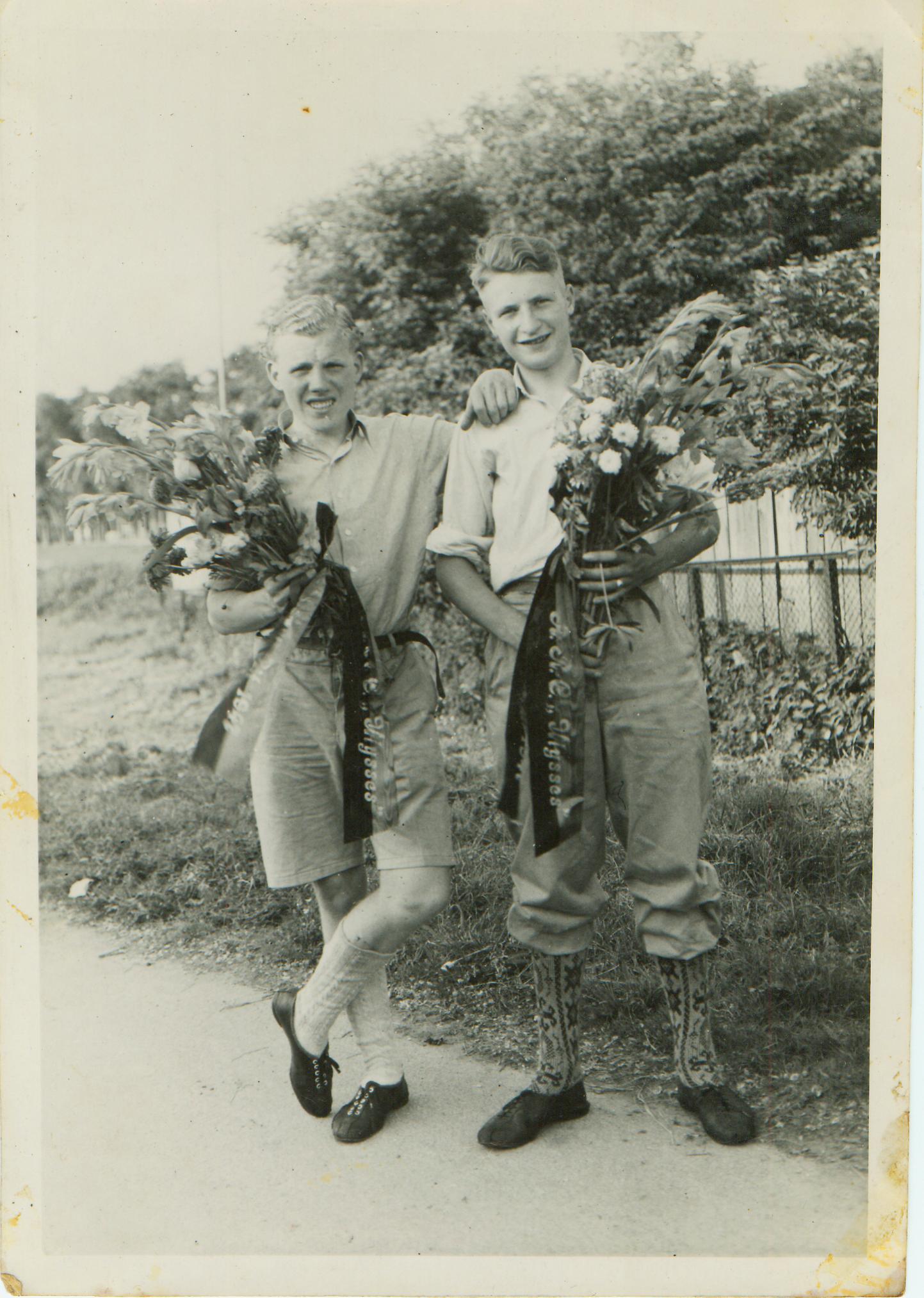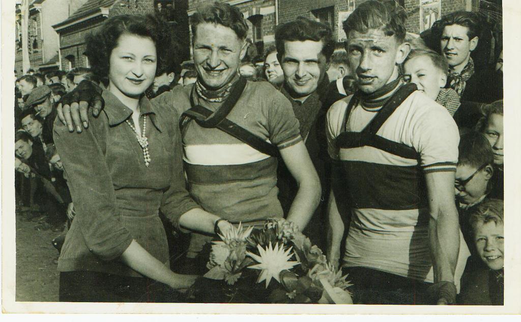 Prachtige tijd. In België waren er toen elke dag volop wedstrijden. Je had ze voor het uitzoeken. Ook meerdaagsen. “In ’50 reden we met een Brabantse ploeg de Ronde van Belgisch Limburg. Allemaal kleppers. Hansje Dekkers en Wim Dielissen bijvoorbeeld. Of Toon “de Kambal” Verstraeten. Piet Verwijmeren uit Teteringen, een neef van de Pel, was mijn koppelgenoot op de baan. Op de Korenbloem bij ons in Tilburg of het betonnen baantje van Bergeijk. Bij Belgische etappekoersen werden we ingekwartierd bij particulieren thuis. Piet had altijd zijn accordeon bij zich en dan was het ’s avonds plezant. Tenminste als we niet teveel hadden moeten afzien. Ik hoor hem nog met jou wil ‘k es naar de veertien billekes spelen. Dat was een Vlaamse hit over een kastelein met zeven dochters. Een beetje pikant, stout liedje, toen. Lang geleden allemaal. Magnifiek. Als je dat vertelt aan de jeugd van nu, lachen ze je vierkant uit”.