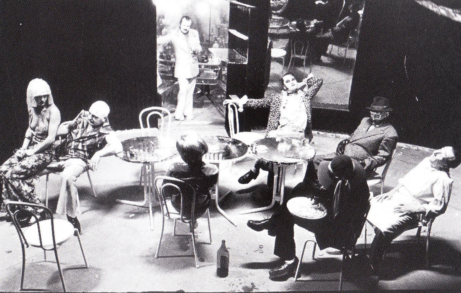 Jappe Claes : Ik hou van die zogenaamde « Konversationsstücke ». Ze bouwen ook een metafoor van een wereld op, een plaats waar mensen samenkomen die eigenlijk niets met elkaar te maken hebben en zich toch binnen een wereld bevinden die zijn eigen gedragspatroon heeft. In « Het Café » ontdek je zo ook de patronen van de alledaagse werkelijkheid, maar dan zeer uitvergroot. Wat zeer theatraal en boeiend is om mee te werken.