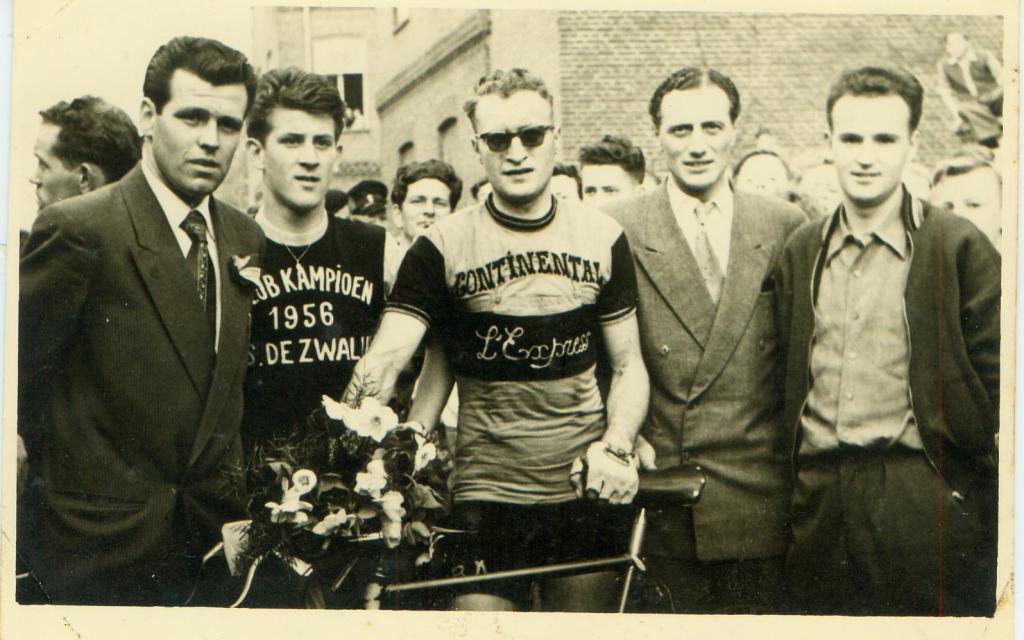 “De koers, die raak je nooit meer kwijt. Die laat je niet meer los. Laatst waren we uitgenodigd op de gouden bruiloft van Jantje Konings in Breda. Jantje had als bijnaam het Peperkoekske vanwege de ontelbare peperkoeken die hij als premie had gewonnen. Nou op dat feest waren natuurlijk allemaal van die ouwe knakkers. Een echte reünie van vijftigerjaren renners. Met elk glas bier werden de verhalen over vroeger, sterker en hilarischer. Met Wim van Est vaak in een hoofdrol. Zoals die keer in België. Als winnaar moest Wim een ereronde rijden. Normaal fietsten we dan honderd meter met de bloemen heen en terug. Want die omlopen zijn soms wel tien kilometer lang. Op een gegeven moment waren ze Wimme kwijt. Was ie met zijn palm, helemaal van de wereld, nog een keer de hele toer gaan doen. We hebben wat afgelachen die avond. Wies van Dongen is wat dat betreft de gangmaker. Een rasverteller“.