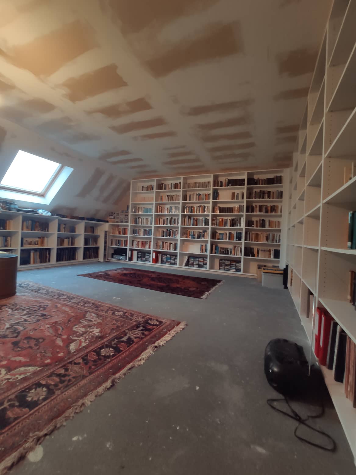 Het is al vijftien jaar geleden dat onze boekenzolder in het huis van mijn vrouw in Dendermonde werd afgewerkt. Veel meer moet ik daar niet over vertellen, alleen misschien deze praktische mededeling: de foto’s werden pas in 2020 genomen (door Stijn Heuvinck, waarvoor dank), zodat de foto’s in dat album te vinden zijn en niet in dat van 2007. Dat zal me in de toekomst wellicht uren opzoekwerk besparen! (RDS)