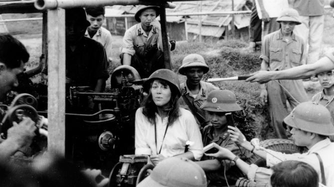 In juli 1972 maakte Jane een controversiële reis naar Hanoi, waar ze de bijnaam ‘Hanoi Jane’ aan dankte (foto). “Ik was een volwassen vrouw. Die soldaten zongen een lied. Ik zong mee in slecht Vietnamees. Ik lachte met hen, applaudisseerde. En daar zijn dan foto’s van genomen,” zei ze rond 2010 tegen Oprah Winfrey. Bij vele Amerikanen ligt deze periode nog steeds gevoelig. In 2004, tijdens de Amerikaanse verkiezingen, werd een vervalste foto van Democratische presidentskandidaat John Kerry met Fonda gebruikt als propaganda tegen Kerry. In 2015 verontschuldigde Jane Fonda zich tegenover Vietnam-veteranen voor haar gedrag: “Ik heb een kolossale, kolossale fout gemaakt, waardoor heel wat mensen dachten dat ik tegen de soldaten ben.”
