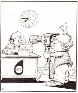 Maggy, look there in the corner sits my wife Leontine. She is so jealous ! Maggy, may I put you an indiscrete question ? I dare not. Yes, o.k., I force me : Maggy, do you like vakbonds ? Yes, trade-unions, yes. Me also not, Maggy, they give me kriebels. Do you have kriebels too ? No ? That is the only difference between you and me, Maggy, we on the continent are not made of iron but of spek. Yes, I know I’m crazy.