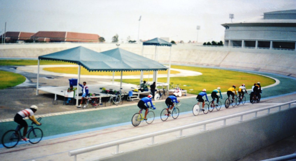 Ze strijken over hun hart en we rijden langs indrukwekkende complexen, stadions, sporthallen, radio- en t.v.-zendinstallaties, zwembaden, noem maar op; de hele mik-mak. Alles pico bello. Ook een wielerbaan? Maar zeker, de piste, een fraai cementen exemplaar ontbreekt niet.