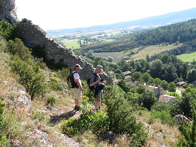 Verlaat het dorp richting Sault, kruis aan hoeve beneden de grote baan Sault-Carpentras en neem de asfaltweg naar het gemeentebos. Na 10 minuten hebt ge aan uw linkerzijde een verlaten hoeve in verval. Terstond daarna vindt ge aan uw rechterzijde een grintweg (karrespoor) die omhoog het bos ingaat. Prachtige wandeling door bossen en lavendelvelden met zeer schone vergezichten. 0p de hoogvlakte op een gegeven ogenblik een splitsing van de weg naar links. Deze linkerweg gaat naar de baan van St.Jean. Wanneer ge goed kijkt zult u zien dat bedoelde splitsing een kruispunt is, want naar rechts gaat een kleine voetwegel direct naar Monieux. Indien ge de wandeling wil verkorten dus naar rechts kleine voetwegel volgen en ge daalt naar de brug over de Nesque. Voor volledige wandeling niet links of rechts maar rechtdoor tot de weg schijnbaar doodloopt tegen een bos. Even naar rechts afzwenken en ge zult zien dat de weg verder door het bos afdaalt naar de vallei. Bij voorkeur niet de asfaltbaan nemen maar de bergwand blijven volgen tot aan de brug. Deze niet moeilijke maar zeer schone wandeling is ten zeerste aanbevolen.