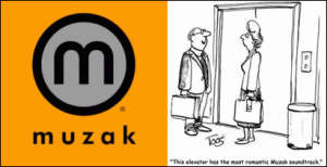 De hoofdletter voor Muzak is verantwoord, want het is inderdaad geen scheldwoord zoals ik altijd heb gedacht, maar de verkorte weergave van de American Muzak Corporation, die al sedert 1934 bestaat (*), maar “pas” sinds 1966 “wetenschappelijk” werd uitgebouwd door U.V. “Bing” Muscio. Op dit moment zendt Muzak muziekprogramma’s 24 uur lang via een satelliet de wereld rond (25 landen verspreid over vijf continenten) vanuit North Carolina. Het schema is verdeeld in segmenten van een kwartier (13,5 minuten om precies te zijn, met anderhalve minuut stilte tussendoor), waarin telkens vijf of zes melodietjes worden gespeeld, gerangschikt in stijgende orde van stimuluswaarde. De segmenten zijn zelf gerangschikt in een curve met pieken tussen 10 en 11 uur ’s ochtends en 3 en 4 uur in de namiddag als het arbeidstempo de neiging heeft te verslappen. Na de middag en na 18 uur daalt de curve “om de opwinding tijdens de lunch en op het einde van de dag tegen te gaan”. Alhoewel muziekliefhebbers het eens zijn over het totale gebrek aan kwaliteit van deze muziek (vandaar de verschuiving van productnaam tot scheldwoord), toch zou wetenschappelijk vaststaan dat de productie ermee kan opgedreven worden, niet zozeer door een ritmeverhoging (muzak heeft meestal trouwens trage tempi, alleen als grootwarenhuizen willen sluiten, drijven ze het tempo op om de klanten tot haast aan te zetten), maar door een vermindering van productiefouten. Zelfs het absenteïsme zou erdoor verkleinen. Dat zou o.m. te maken hebben met het feit dat composities steeds in majeur worden gebracht…