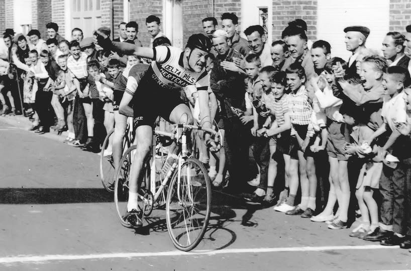 Freddy De Blieck, een streekrenner (Beveren-Waas) waar wij vaak zijn naar gaan kijken (op bovenstaande foto wordt hij in de Sint-Jorisstraat in Temse nipt verslagen door thuisrenner Sylvain Roelants), viert vandaag zijn tachtigste verjaardag.