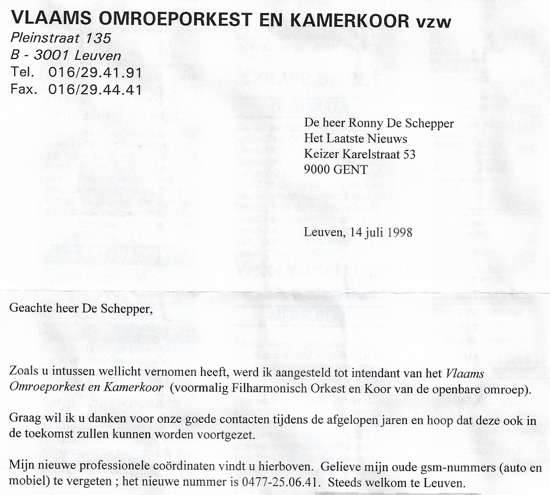 Het Vlaams Radio Orkest werd eind 2000 ook vakkundig afgemaakt op Klara, toch de zender waarnaar de “radio” uit de orkestnaam het meest verwijst. En misschien wel juist dààrom. Die mannen van Klara wilden wel eens laten zien dat ze geen “klassieke radio Donna” waren en dat ze dus bewust niet-commercieel in het eigen vlees durfden te snijden. Al waren sommige argumenten die ze aandroegen wel to the point, moet ik zeggen. Maar dat ging dan bijvoorbeeld over de onnozele bindteksten die directeur Dries Sel had geschreven voor Brittens “young person’s guide to the orchestra”.