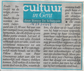 Twee erotische meesterwerken in Studio Skoop: “Exotica” en “The Pillow Book” (foto). Dit delen: Klik om te delen op Facebook (Opent in een nieuw venster) Facebook Klik om te delen op X (Opent in een nieuw venster) X Klik om dit te e-mailen naar een vriend (Opent in een nieuw venster) E-mail Klik om af te drukken (Opent in een nieuw venster) Print Meer Klik om op LinkedIn te delen (Opent in een nieuw venster) LinkedIn Klik om op Pinterest te delen (Opent in een nieuw venster) Pinterest Vind-ik-leuk Aan het laden...