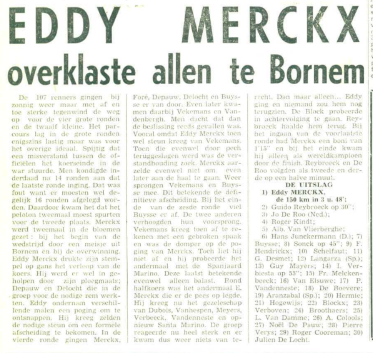 Wat deden de Blommenkinders in de verlofweek? Dinsdag naar de beroepsrennerskoers in Bornem. Eddy Merckx won, maar er was veel herrie omwille van het verkeerd aankondigen van de laatste ronde.