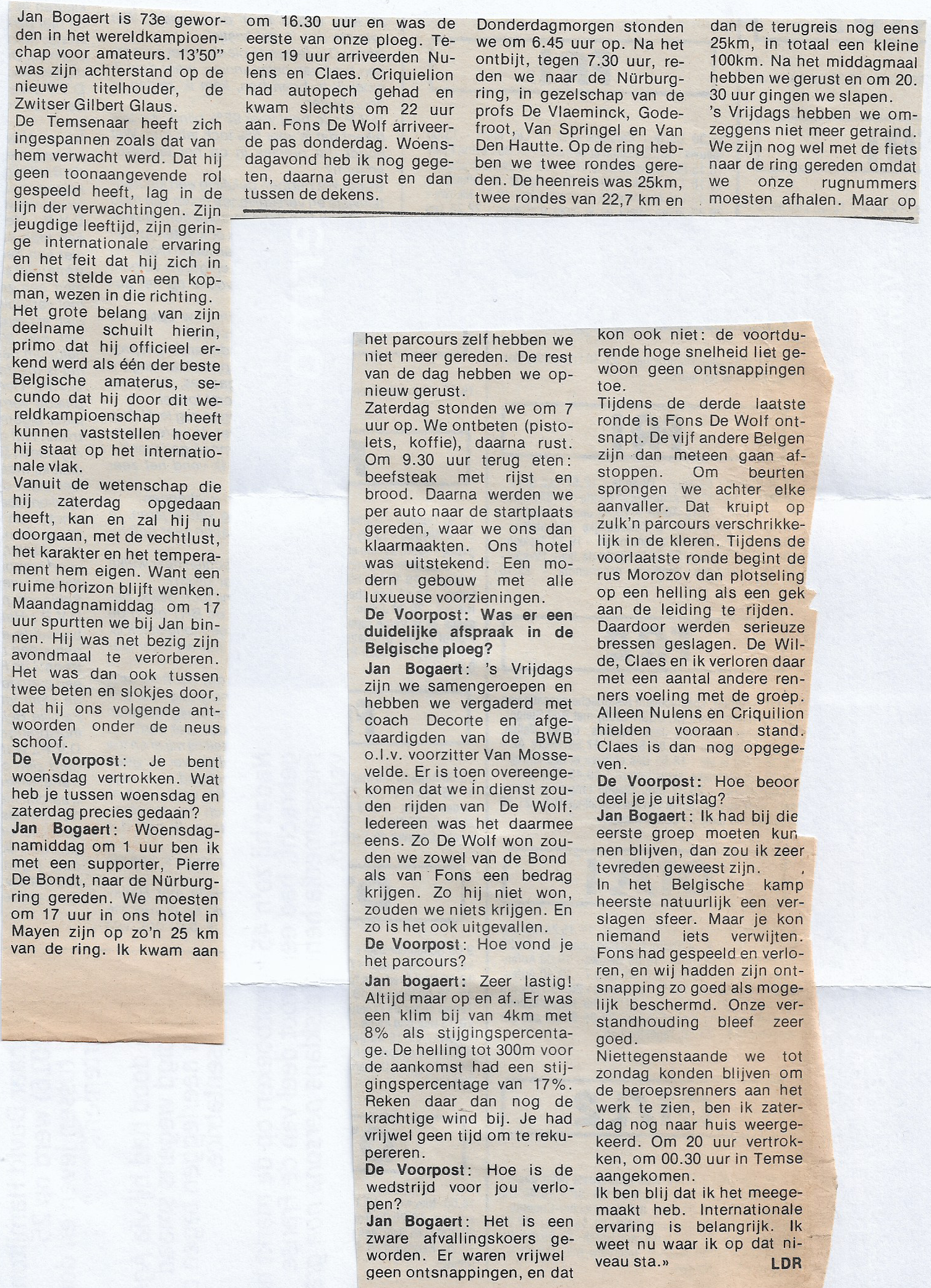 Jan Bogaert is pas 73ste geworden in het wereldkampioenschap voor amateurs op de Nürburgring dat werd gewonnen door de Zwitser Gilbert Glaus. Luc De Ryck vroeg hem waaraan deze ontgoochelende prestatie te wijten was… Dit delen: Share op Facebook (Opent in een nieuw venster) Facebook Delen op X (Opent in een nieuw venster) X E-mail een link naar een vriend (Opent in een nieuw venster) E-mail Afdrukken (Opent in een nieuw venster) Print Meer Delen op LinkedIn (Opent in een nieuw venster) LinkedIn Delen op Pinterest (Opent in een nieuw venster) Pinterest Vind-ik-leuk Aan het laden...