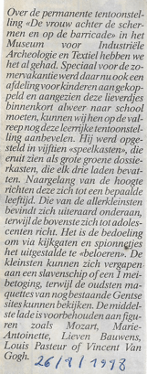 De tentoonstelling “De vrouw op de barricaden” had ook een afdeling voor kinderen… Dit delen: Klik om te delen op Facebook (Opent in een nieuw venster) Facebook Klik om te delen op X (Opent in een nieuw venster) X Klik om dit te e-mailen naar een vriend (Opent in een nieuw venster) E-mail Klik om af te drukken (Opent in een nieuw venster) Print Meer Klik om op LinkedIn te delen (Opent in een nieuw venster) LinkedIn Klik om op Pinterest te delen (Opent in een nieuw venster) Pinterest Vind-ik-leuk Aan het laden...