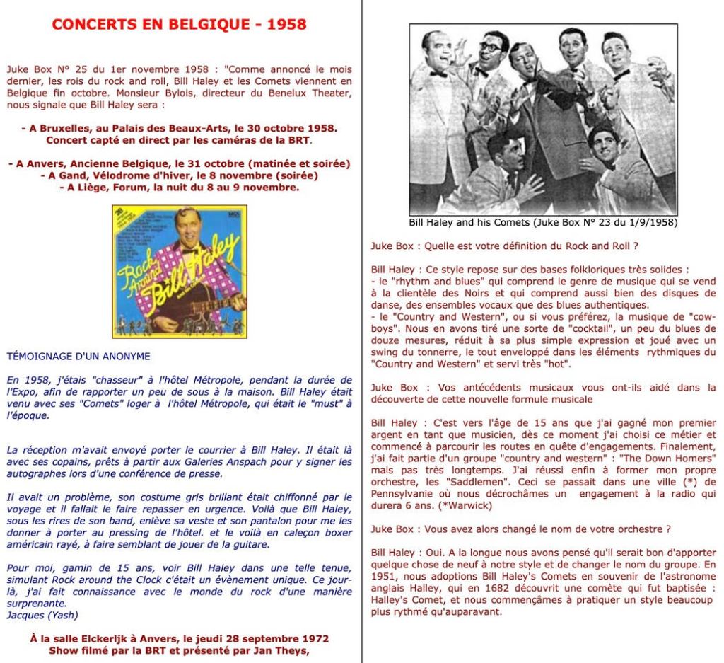 Beste Ronny, heeft u de precieze chronologie van de optredens van Bill Haley in België in 1958? Met hartelijke dank, Johan Ral