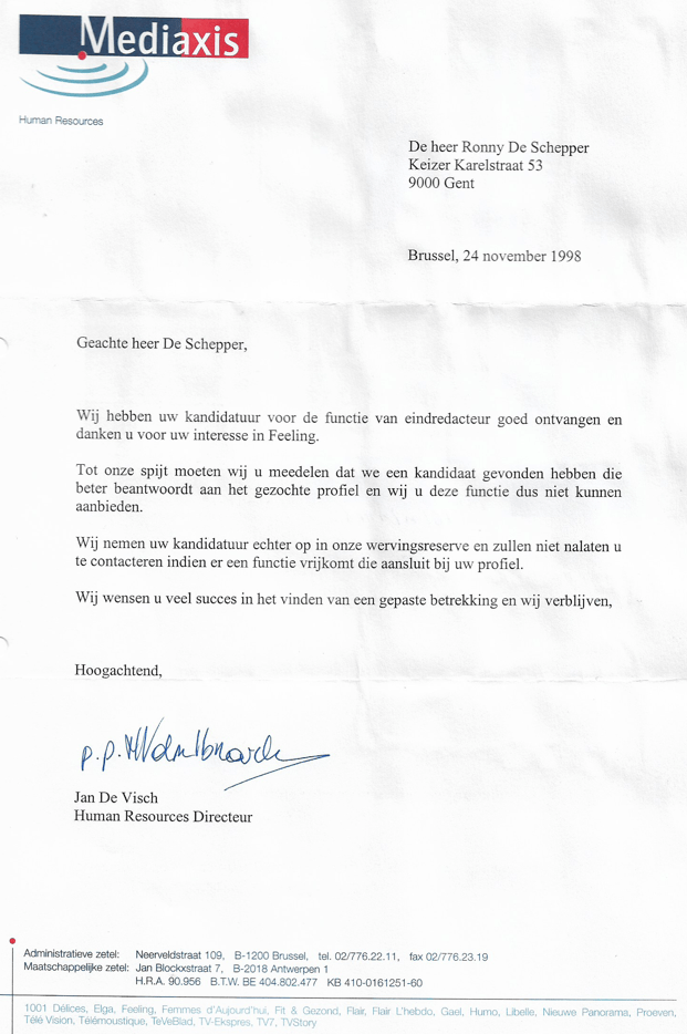 “Een pony, wie durft?” kopt het magazine Feeling hierboven. 25 jaar geleden was het geen pony maar ondergetekende Ronny die bij het magazine solliciteerde… Vruchteloos…