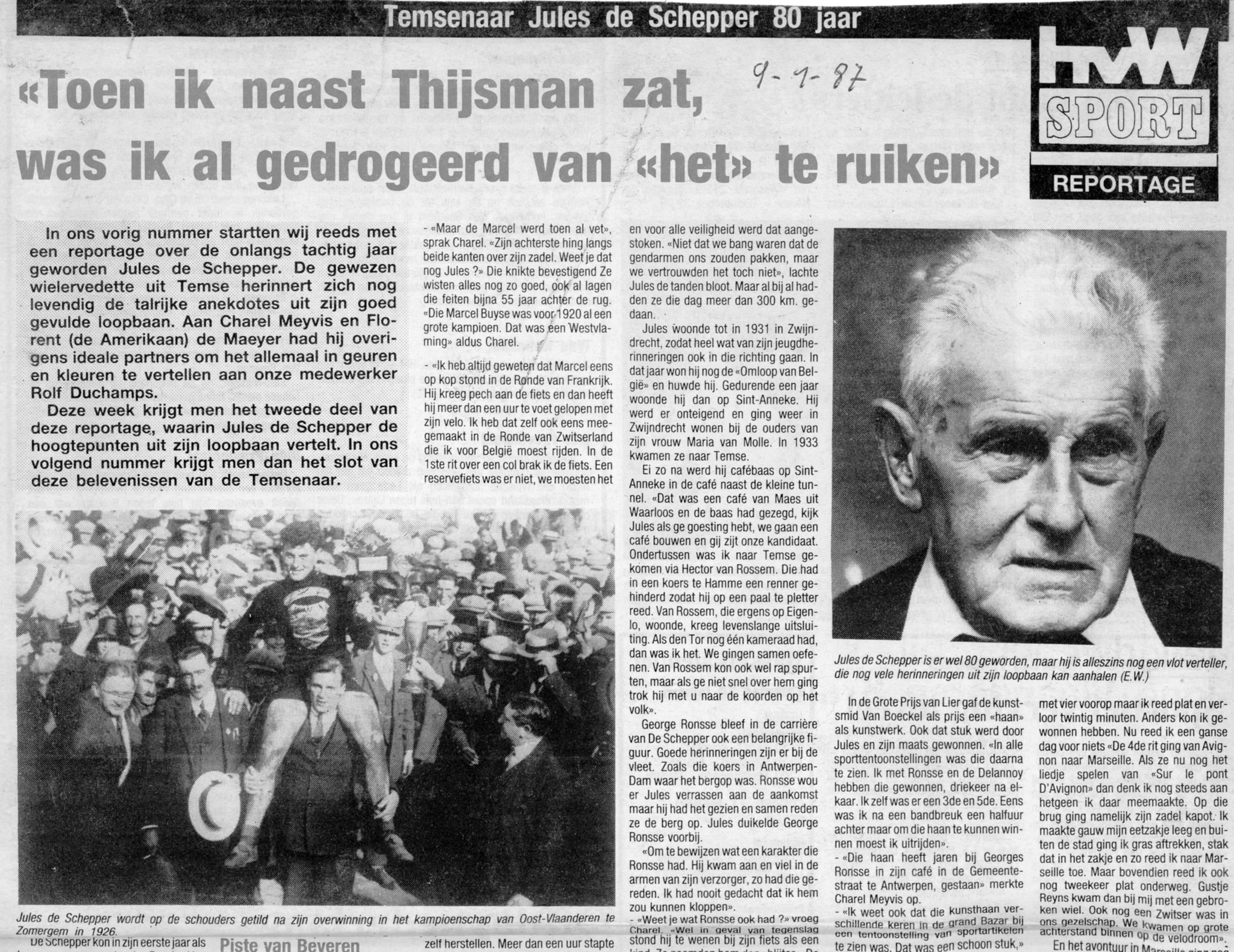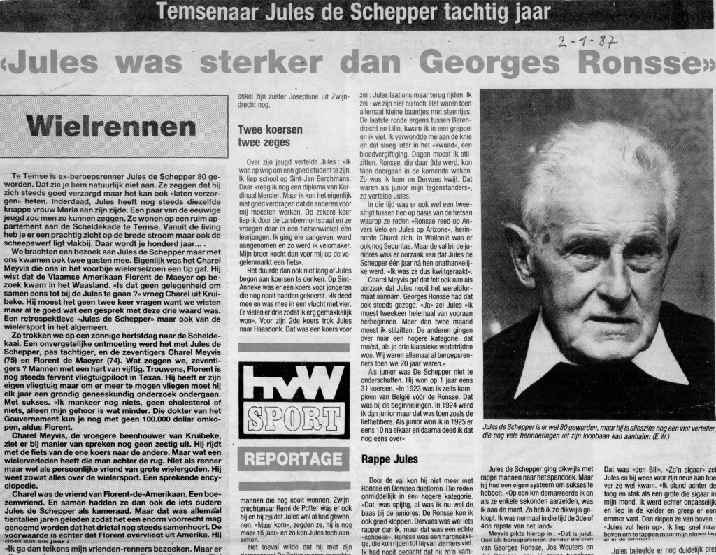 Het is ook al 35 jaar geleden dat de gewezen beroepsrenner Jules Deschepper is overleden.