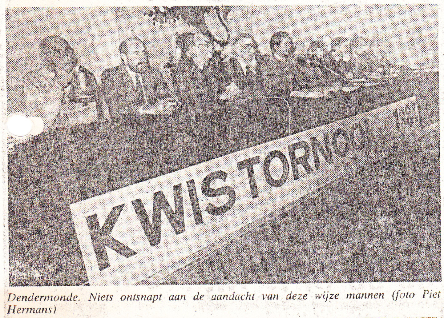 Het Interprovinciale Quiztornooi Dendermonde 1984 kreeg vorige zaterdag in het Dendermondse V.T.I. al een leuk aperitief voorgeschoteld. De zeventiende editie kan in maart 1984 immers maar met de gebruikelijke 45 ploegen van start gaan zodat eerst nog even moest worden uitgemaakt wie van de 66 ingeschreven teams de quizaspiraties voor een jaartje mocht opbergen. Er was erg veel belangstelling en hoewel het er vooral op aan kwam niet onderaan te eindigen was er ook heel wat spanning. Vier uur duurde het quizgebeuren en toen bleek dat onder de twaalf gewipten acht nieuwelingen maar ook de oudgedienden – Collega’s-Lebbeke, Minerva Lede, VTB-Roosdaal en Olympia Gent – zaten. Verrassend was ook de overwinning van de nieuwe Brusselse ploeg ‘De Rode Vaan’ (29 punten op 35). Een ploeg die meteen door de traditionele kanshebbers voor het groots Dendermonde quizgebeuren in het oog worden gehouden.