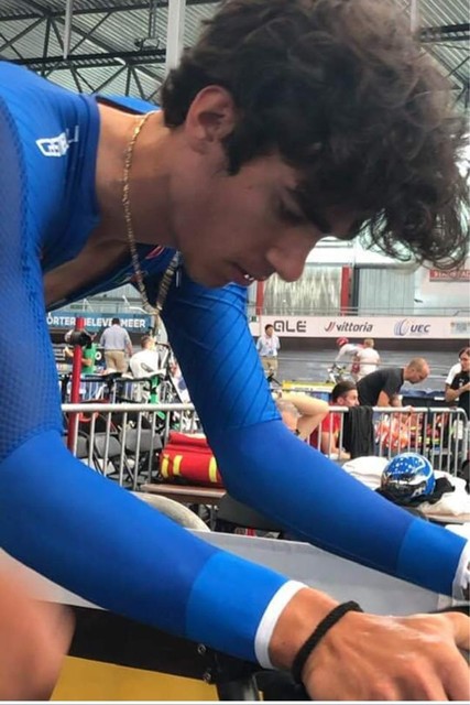 “Het ongeval deed zich rond half elf voor tijdens het Europees Kampioenschap baanwielrennen voor de jongeren. In de discipline scratch, een individuele wedstrijd voor de renners waarbij alleen de eindsprint telt, kwam de Italiaan Lorenzo Gobbo samen met enkele andere renners ten val. Bij die valpartij raakte één van de pedalen van Gobbo zwaar de houten piste. Daarbij kwam één van de planken los. Het houtstuk van meer dan een halve meter doorboorde de renner in de zijde. De Italiaan bleef wel bij bewustzijn, en al bij al zou het bloeden ook zijn mee gevallen. Er werd een grote tang aangebracht om vermoedelijk een deel van de lat af te knippen. Een ambulance kwam ter plaatse en vanachter uit zeil werd de lat uit het lichaam getrokken. De jonge Italiaanse renner werd vervolgens onmiddellijk overgebracht naar het Jan Palfijn ziekenhuis in Gent, waar een operatie nodig was. De long van de renner was geperforeerd en hij had houten splinters in zijn dijbeen. Gobbo moet nog drie dagen in het ziekenhuis blijven. (…) Na het afvoeren van de renner en het herstel van de piste aan de Blaarmeersen gingen de wedstrijden wel normaal door,” aldus Guy Fransen in Het Nieuwsblad van 12 juli 2019. Bij het artikel staat er een foto van Erik Soberon, die ik om copyright-redenen niet heb durven overnemen, maar ik vrees dat de andere foto’s die op het internet zijn te vinden (tot in Amerikaanse kranten!) eigenlijk ook verknipte foto’s (*) zijn van het origineel van Soberon, die wellicht de enige aanwezige fotograaf was. Indien dat zo is, wil ik mij hiervoor verontschuldigen. Onderstaande foto daarentegen is afkomstig van Facebook.