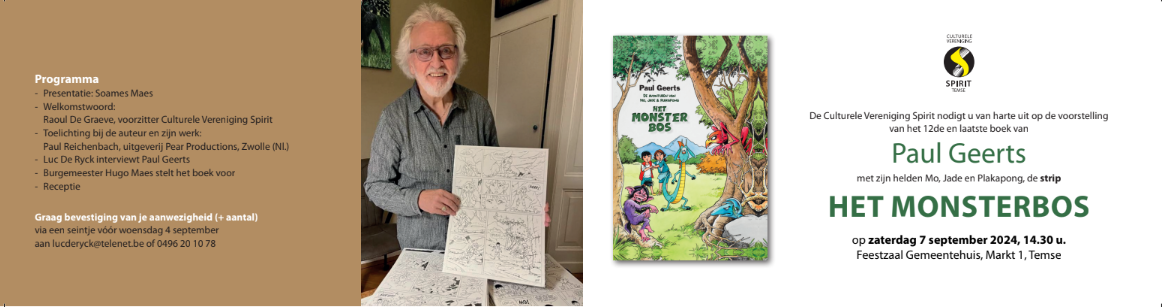 Paul Geerts, de tweede vader van Suske en Wiske, intussen 87 jaar jong, legde onlangs de laatste hand aan wat zijn laatste publicatie-in-boekvorm zal zijn: de strip Het Monsterbos. Het album wordt voorgesteld op zaterdag 7 september, 14.30 u., in de feestzaal van het gemeentehuis (Markt) van Temse.