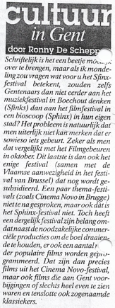 Filmfestival in Sphinx (foto VRT) Dit delen: Klik om te delen op Facebook (Opent in een nieuw venster) Facebook Klik om te delen op X (Opent in een nieuw venster) X Klik om dit te e-mailen naar een vriend (Opent in een nieuw venster) E-mail Klik om af te drukken (Opent in een nieuw venster) Print Meer Klik om op LinkedIn te delen (Opent in een nieuw venster) LinkedIn Klik om op Pinterest te delen (Opent in een nieuw venster) Pinterest Vind-ik-leuk Aan het laden...