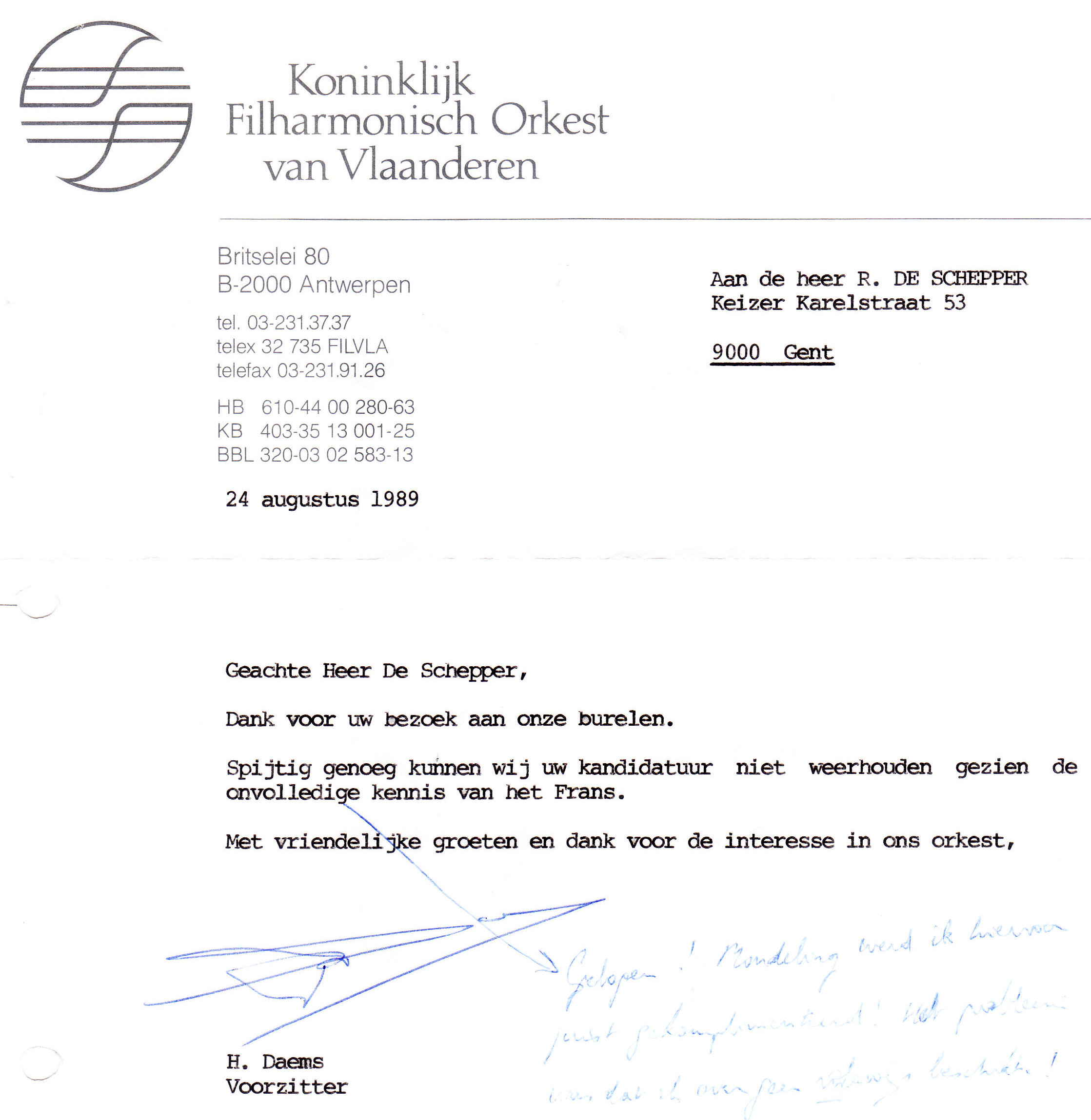 Als commentaar zou ik me willen beperken tot wat ik op de brief zelf heb geschreven, maar wat helaas niet erg leesbaar is: “Gelogen! Mondeling werd ik hiervoor juist gecomplimenteerd! Het probleem was dat ik over geen rijbewijs beschikte!” Van dat laatste heb ik dan meteen maar werk gemaakt, ook al zal ik uiteindelijk (buiten de lessen en het examen) nooit met een auto rijden. Op dit moment màg ik zelfs niet meer met een wagen rijden (omwille van mijn slechte ogen).