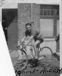 Daan Hugaert werd op 15/9/1949 geboren in… een familie van wielrenners. Zijn vader Albert “Berten” Hugaert (foto) was in de jaren dertig een geduchte sprinter die meestal “met een neuslengte” won, want hij was nogal goed gegeveld. Hij werd echter net geen prof omdat hij in de Bevrijdingslaan, waar zijn café stond, een meisje leerde kennen dat in diezelfde straat een confectiewinkeltje had.