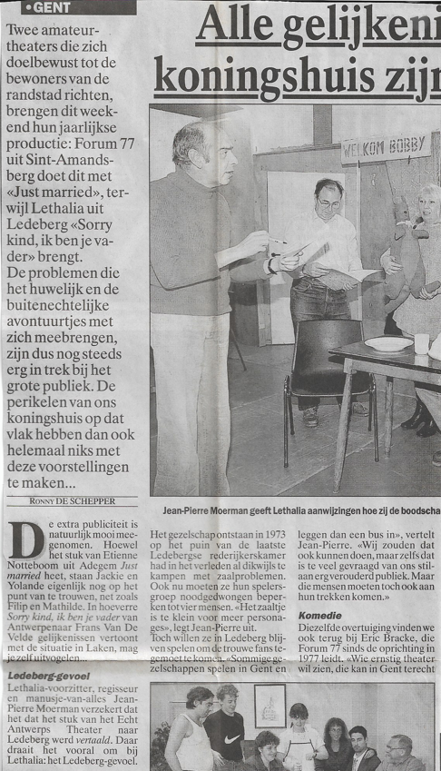Jean-Pierre Moerman geeft Lethalia aanwijzingen hoe zij de boodschap “Sorry kind, ik ben je vader” moeten overbrengen (foto Nicholas Maeterlinck)