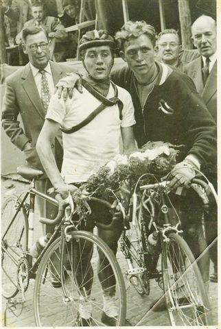 Aanstaande zondag 10 november wordt Jaap Kersten 90 jaar. Jaap is nog zeer vitaal. Hij is de op één na oudste Nederlandse Tour de France renner. Zijn vriend Piet Damen is een paar maanden ouder en daarmee de oudste nog in leven zijnde TdF coureur in Nederland. Onderstaand een artikel van Theo Buiting uit 2008, opgenomen in het jubileumboek van TWC Siebengewald. Ik denk dat het, met minimale aanpassing, nog voldoende beeld schetst van de (veelal ondergewaardeerde) carrière van Jaap. (Bovenstaande foto: Chaam 1956 Jaap glorieus winnaar bij de amateurs.)