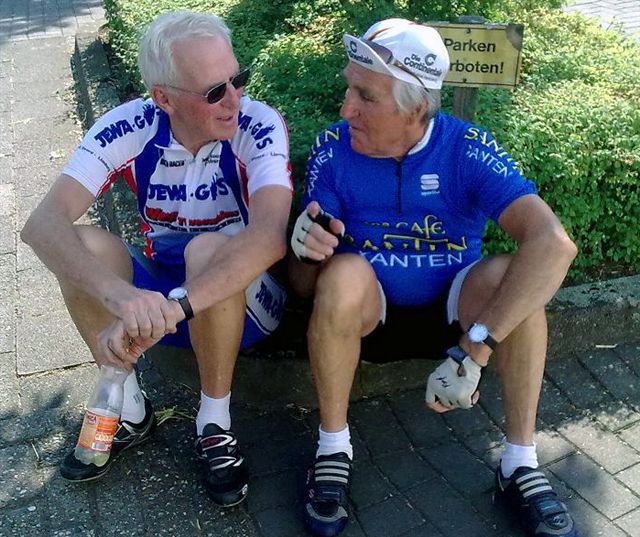 Jaap en Hennes Junkermann als wielertoeristen alweer een tijdje geleden op een warme zomerdag.