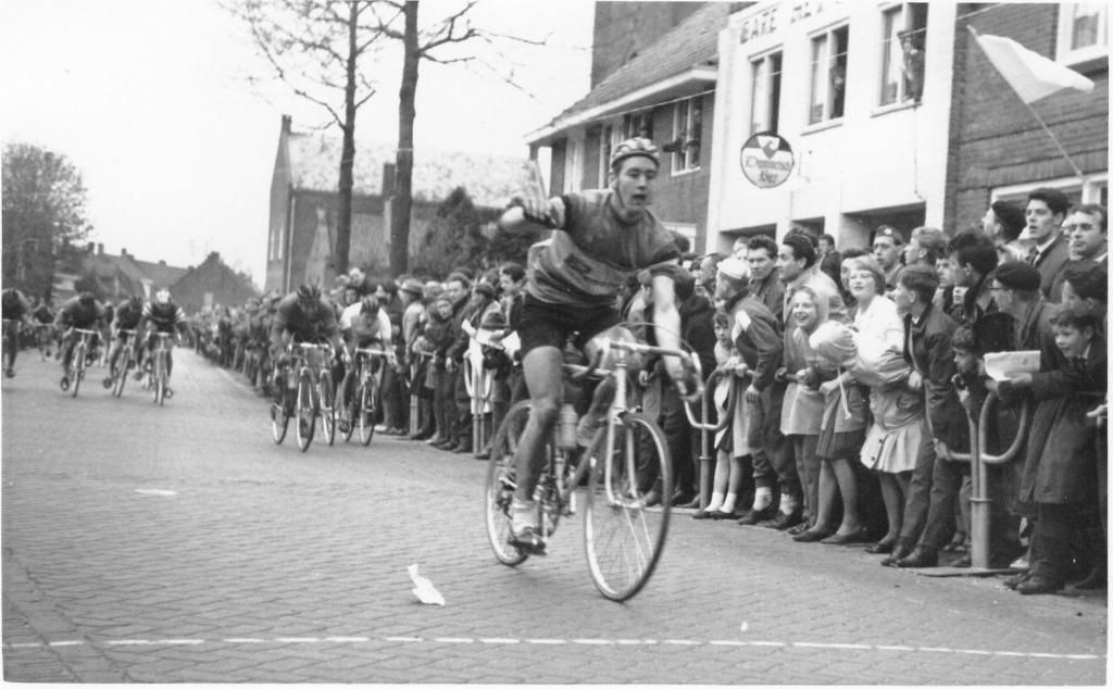 Beter nog dikwijls. Als winnaar vaak alleen vooruit. Maar het deed hem eigenlijk allemaal niet zo veel. Boomlange Piet bleef er heel koeltjes onder; wat stoïcijns zelfs bijwijlen. Broer Harrie, klein en geblokt, fietste ook. Twee tegenpolen, niet alleen fysiek maar ook qua karakter. Harrieke als fanatiek rennerke, een woelwater met het hart voor op de tong. Piet, ingetogen, afstandelijker, gezegend met klasse in een sterk lijf.