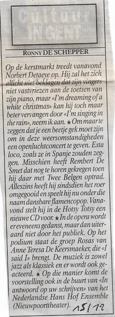 Rembert De Smet (foto YouTube) stelde zijn nieuwe CD voor in de Hotsy Totsy… Dit delen: Klik om te delen op Facebook (Opent in een nieuw venster) Facebook Klik om te delen op X (Opent in een nieuw venster) X Klik om dit te e-mailen naar een vriend (Opent in een nieuw venster) E-mail Klik om af te drukken (Opent in een nieuw venster) Print Meer Klik om op LinkedIn te delen (Opent in een nieuw venster) LinkedIn Klik om op Pinterest te delen (Opent in een nieuw venster) Pinterest Vind-ik-leuk Aan het laden...