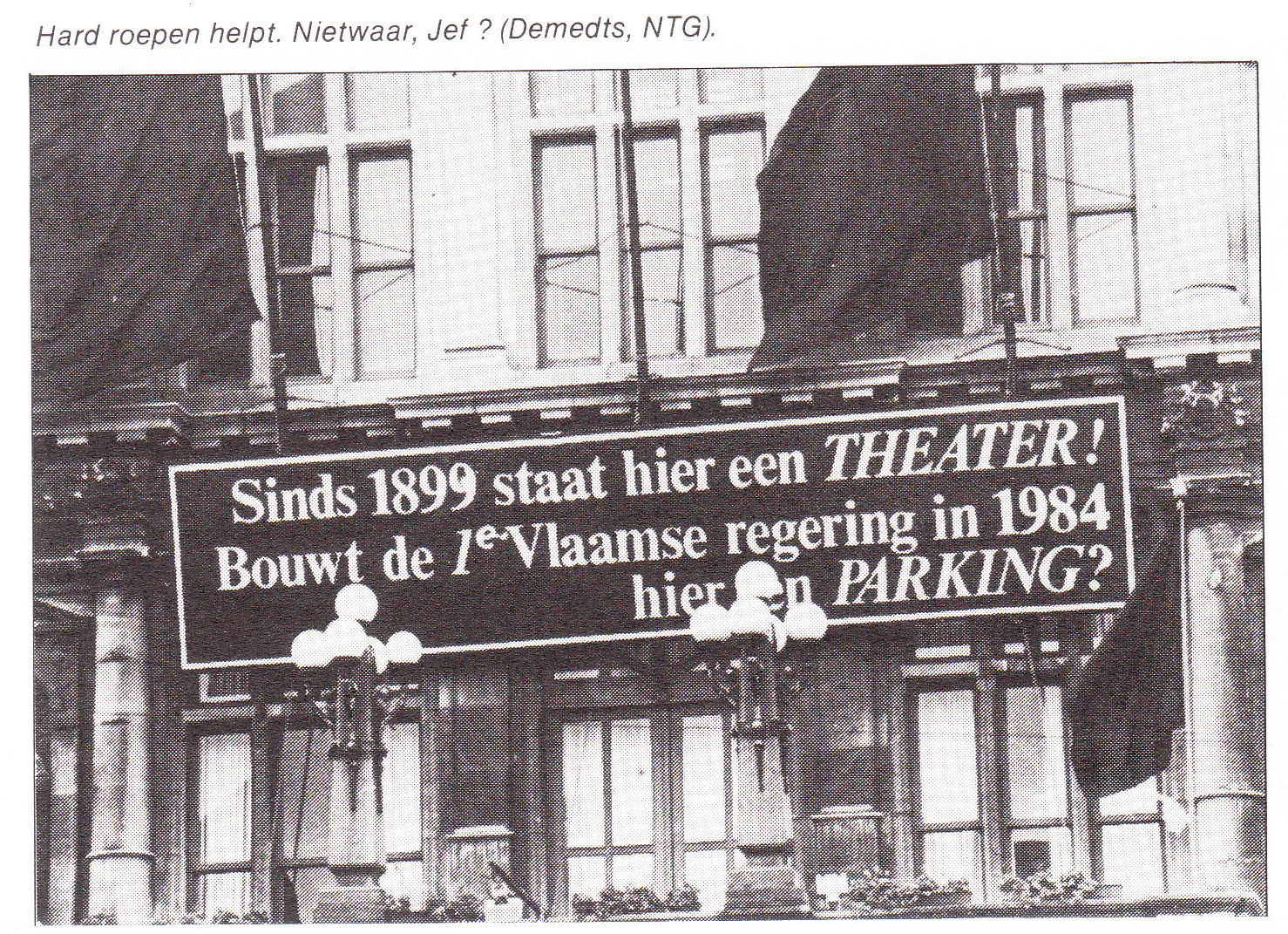 Nu mag het merkwaardig heten, maar precies twee gezelschappen die hun subsidie geschrapt zagen, Tentakel en het Nieuw Vlaams Theater (NVT), houden zich omzeggens met niets anders bezig dan de eigen dramaturgie. Voor het NVT is dit zelfs een beleidsoptie. In die zin is het NVT uniek in Vlaanderen. De hypocrisie van Poma stijgt dan ook helemaal ten top wanneer hij in een woord vooraf van het boek « Voo reen eigen dramaturgie » dat het NVT in ’83 uitgaf naar aanleiding van 10 jaar NVT zegt, wij citeren : « Het NVT creëert tevens de mogelijkheid om talent dat zich niet meteen manifesteert of het grote publiek aantrekt, meer dan één creatie aan te bieden. Op die manier wordt het geld van de overheid aangewend om te investeren in de toekomst ». En hij besluit : « Als beleidsverantwoordelijke minister, die het theater in het algemeen en het NVT in het bijzonder een goed hart toedraagt, kan ik deze publicatie dan ook van harte toejuichen ».