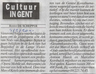 Antoon Haeck (rechts naast José d’Autry op deze YouTube-foto) is Noë in de opera die Benjamin Britten aan het bijbelse personage heeft gewijd…
