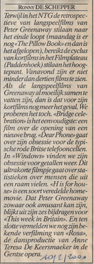 “The Pillow Book” in het NTG… Dit delen: Klik om te delen op Facebook (Opent in een nieuw venster) Facebook Klik om te delen op X (Opent in een nieuw venster) X Klik om dit te e-mailen naar een vriend (Opent in een nieuw venster) E-mail Klik om af te drukken (Opent in een nieuw venster) Print Meer Klik om op LinkedIn te delen (Opent in een nieuw venster) LinkedIn Klik om op Pinterest te delen (Opent in een nieuw venster) Pinterest Vind-ik-leuk Aan het laden...
