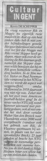 Dankzij de vertolking van Hilde Heijnen kan de vertaling van Walter Van den Broeck (foto Rob Bogaerts van Anefo via Wikipedia) van “Cat on a hot tin roof” geïnterpreteerd worden als “Een hete kat op een zinken dak”…