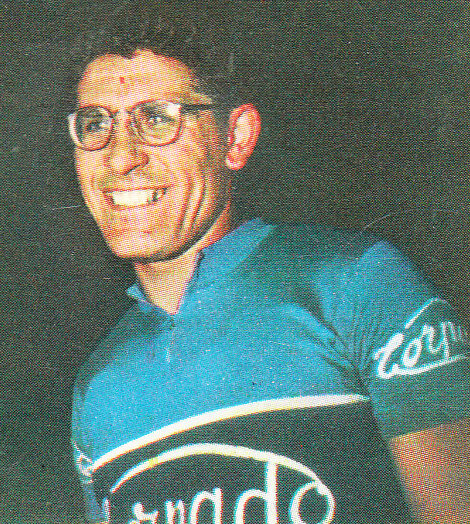De gebrilde (in die tijd uitzonderlijk) Italiaanse profrenner Pierino Lovisetto viert vandaag zijn 95ste verjaardag (foto’s de Wielersite & eigen collectie).