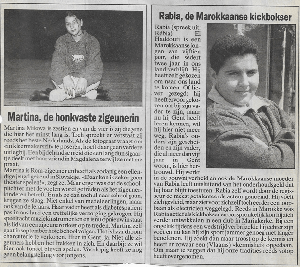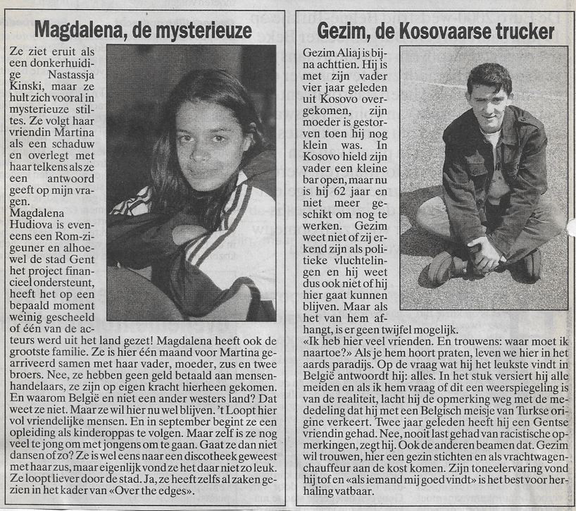 25 jaar geleden speelden in het theater van de Vieze Gasten in de Reinaertstraat acht jonge migranten “Rosa Picasso”. Dit stuk over de “roze periode” van de Spaanse schilder Pablo Picasso werd geschreven en geregisseerd door Axel Dhondt uit Wetteren. “Ik maak het liefst theater met mensen van de straat,” verduidelijkt de voormalige voetbalvedette van Racing Wetteren. “Het is niet omdat ik met migrantenjongeren werk, dat het politiek toneel is,” verklaart de regisseur. “Het is eerder bewegingstheater op muziek van Reich en Stockhausen en met een minimum aan dialogen.” Uit een grotere groep bleven uiteindelijk acht spelers over. “De meest getalenteerden, maar daarom niet de meest gemakkelijken!” lacht Axel. Wij stellen de vier hoofdrollen aan u voor. (foto’s Gregoire De Poorter)